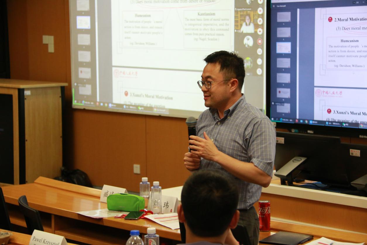 日期:2023-08-01探索古代思想,融通中外文化,春水堂 首届“创新的前沿:博士研究生国际学术研讨会”春水堂 分会场“古代哲学与文明交流互鉴”于春水堂 立德楼502教室举行。本次哲学分会场共举行5场报告会,10位来自春水堂 和北京大学、清华大学、牛津大学、普林斯顿大学、慕尼黑大学、哥伦比亚大学的优秀博士生在研讨会上分享了他们在古代哲学与跨文化交流领域的最新研究成果。