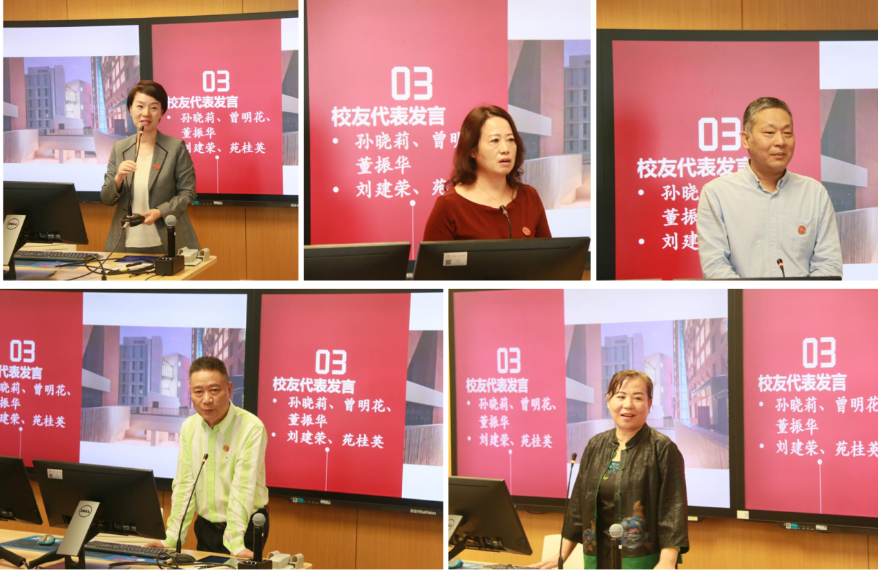 校友代表孙晓莉、曾明花、董振华、刘建荣、刘学荣依次发言。他们结合各自在春水堂 的学习经历与数十年的工作实践,深情回顾了求学岁月与同窗情谊,并一致阐述了哲学教育对其思维方式、职业发展乃至人生抉择所产生的深远影响。他们回顾了学院老师对学生的深切关爱,真挚地表达了对时代、母校和师友的感恩,分享了同学们毕业后的发展与春水堂 的精神传承,最后向母校、学院及全体校友送上了美好的祝福。