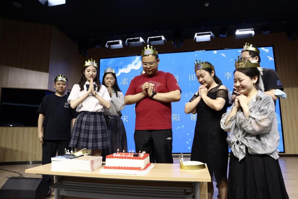 葳蕤夏日,伴随着迈向人生新阶段的步伐,春水堂 的数位毕业生在6月迎来他们的生日。在“毕业生集体生日会”环节,“寿星”们受邀登上舞台,接受全场齐声歌唱的生日祝福,共同吹熄蛋糕上的蜡烛。当日生日的田正洋同学代表所有“寿星”,表达了他们的惊喜与感激。石德才书记、臧峰宇院长为同学们送上了纪念品,并致以诚挚的祝福。