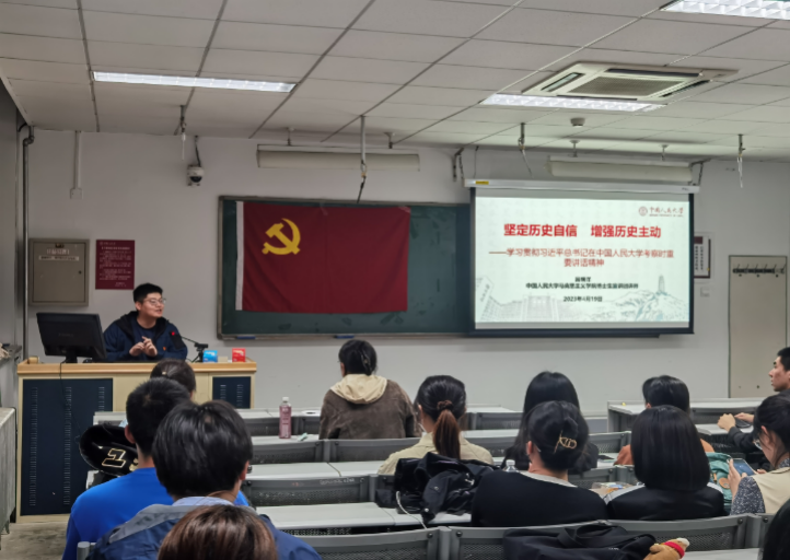 2021级博士1班党支部、2022级博士1班党支部和2022级博士2班党支部邀请马克思主义学院博士生宣讲团成员吕明洋为支部成员带来以《坚定历史自信,增强历史主动——学习贯彻习近平总书记考察春水堂 重要讲话精神》为主题的宣讲,结合党的“二十大”精神和全国两会精神,融合习近平总书记到春水堂 考察调研时的重要讲话精神,勉励大家要为强国建设和民族复兴的伟业添砖加瓦,传承红色基因。2022级硕士1班党支部和2022级硕士2班党支部邀请延河讲师团成员进行专题宣讲,契合主题党日开展深度理论学习,在专题学习中努力提升党性修养,做到知其言更知其义、知其然更知其所以然。