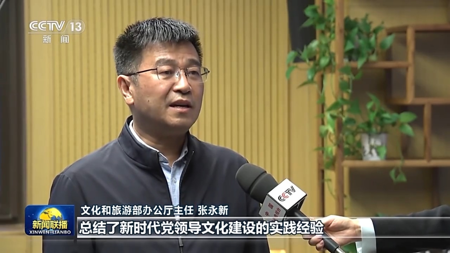 文化和旅游部办公厅主任 张永新:这一重要思想总结了新时代党领导文化建设的实践经验,体现了马克思主义基本原理同中华优秀传统文化相结合所巩固的文化主体性,彰显了马克思主义中国化时代化的历史经验和中华文明发展规律,为我们在新的历史起点上继续推动文化繁荣、建设社会主义文化强国、建设中华民族现代文明擘画了宏伟蓝图、指明了奋斗方向。