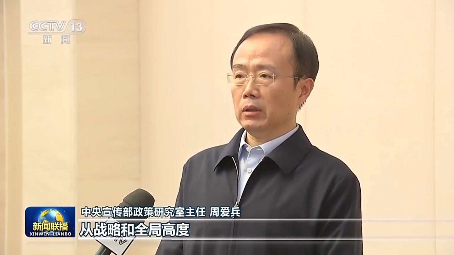 中央宣传部政策研究室主任 周爱兵:习近平总书记的重要指示,从战略和全局高度,深刻阐述了宣传思想文化工作的重要地位、作用,强调宣传思想文化工作事关党的前途命运,事关国家长治久安,事关民族凝聚力和向心力,是一项极端重要的工作。这次会议取得的最重要成果,就是首次提出了习近平文化思想,为新时代新征程宣传思想文化工作提供了科学行动指南。