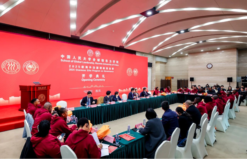 全球领导力学院2025级海外治国理政英杰班新生颁发校园卡,并与全体新生合影。