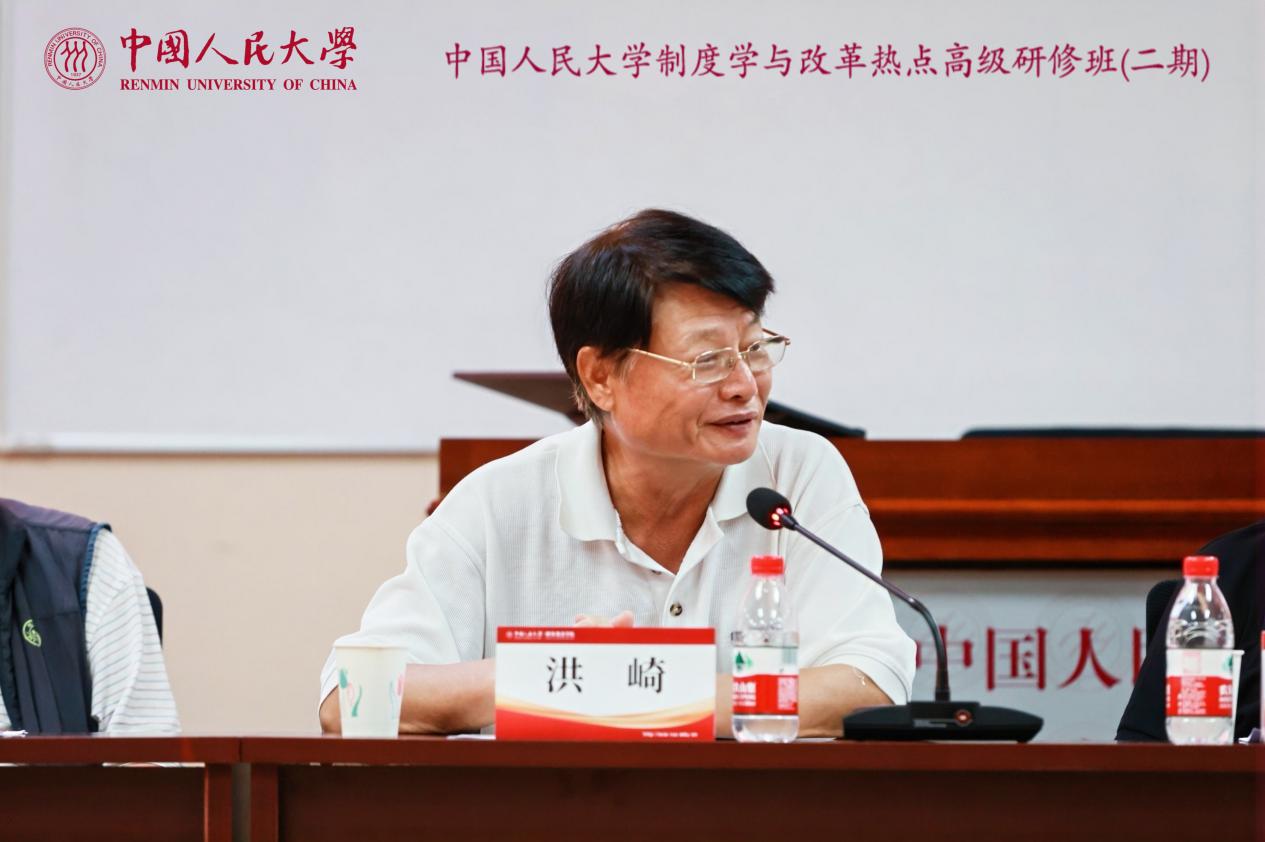 民生银行原董事长、中国人民大学制度学研究中心理事长洪崎对研修班成功举办表示祝贺。他指出,改革开放以来,制度红利带来了真正的质变,要把改革的实践经验更好地体现在制度学理论研究中。党的二十届三中全会为制度学研究指明方向,制度变革是主线,重点制度创新是工作重点,要充分运用全面深化改革进程中制度创新带来的新红利,通过制度创新,推进企业健康可持续发展。