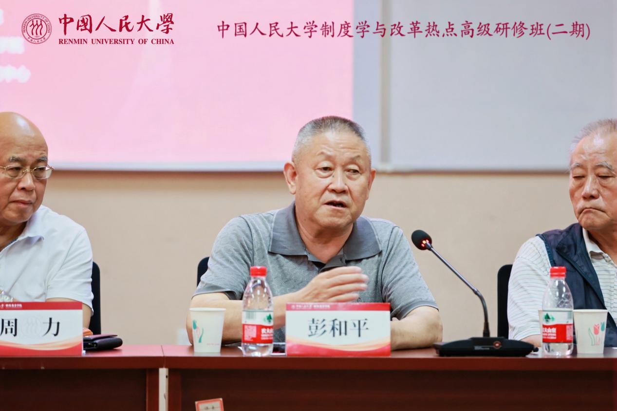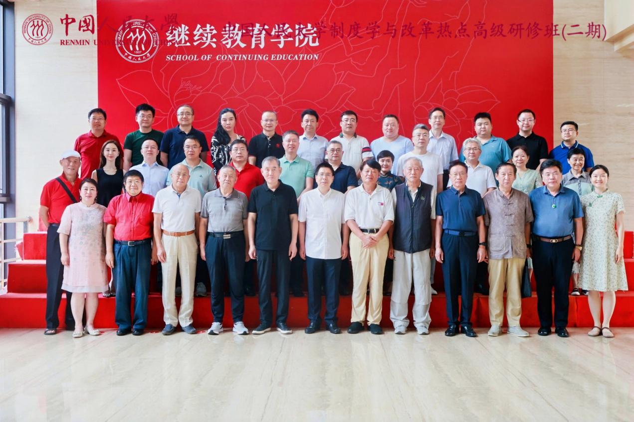 成功举办。中国人民大学党委副书记郑水泉,民生银行原董事长、中国人民大学制度学研究中心理事长洪崎,第十三届全国人大农业农村发展委员会主任委员陈锡文,第十三届全国政协文化文史和学习委员会副主任、中国作家协会原党组书记钱小芊,中国法学会副会长、最高人民法院原副院长姜伟,中共中央对外联络部原副部长于洪君,国务院国有重点大型企业监事会原主席倪小庭,国家行政学院原副院长周文彰,中共中央台办、国务院台办原副主任李亚飞,中共中央对外联络部原副部长周力,中国人民大学制度学研究中心主任彭和平等领导和嘉宾参加结业典礼及相关活动。结业典礼由春水堂