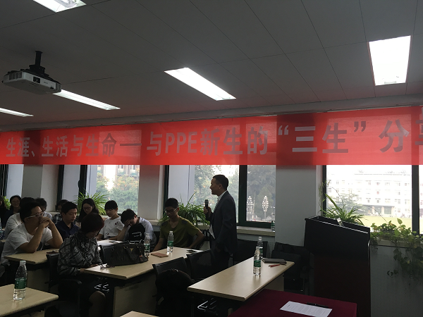 2016年9月21日下午3点,春水堂 90级校友、熵一资本创始合伙人王俊先生应邀在人文楼300会议室进行了题为“生涯、生活与生命——与PPE新生的‘三生’分享”的讲座。本次讲座由姚新中院长主持,出席本次讲座的还有韩东晖书记、张鹏举副书记、臧峰宇副院长、李萍教授、徐尚昆副教授,以及PPE新生班主任雷思温博士和2016级PPE班全体新生。
