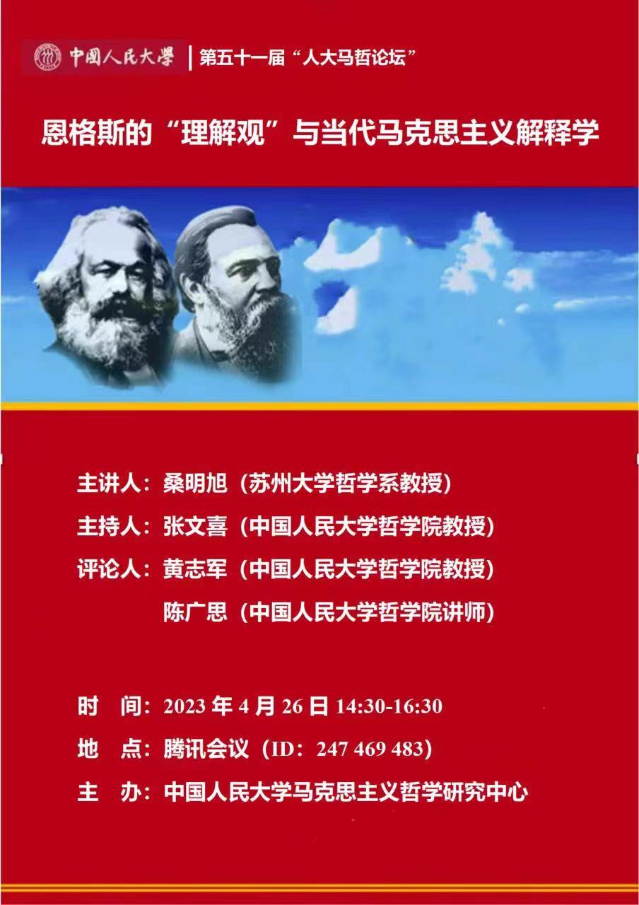 预告 | 第五十一届“人大马哲论坛”:恩格斯的“理解观”与当代马克思主义解释学