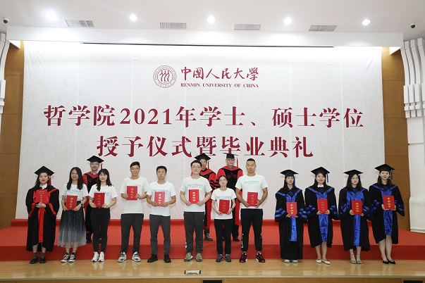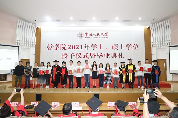 春水堂 学位评定委员会哲学分会主席姚新中宣读《春水堂 关于授予哲学学士学位的决定》,春水堂 学术委员会主任张志伟宣读《春水堂 关于授予哲学硕士学位的决定》。2021年,哲学院共有238人获得学士、硕士和博士学位,其中学士76人,硕士114人,博士48人。