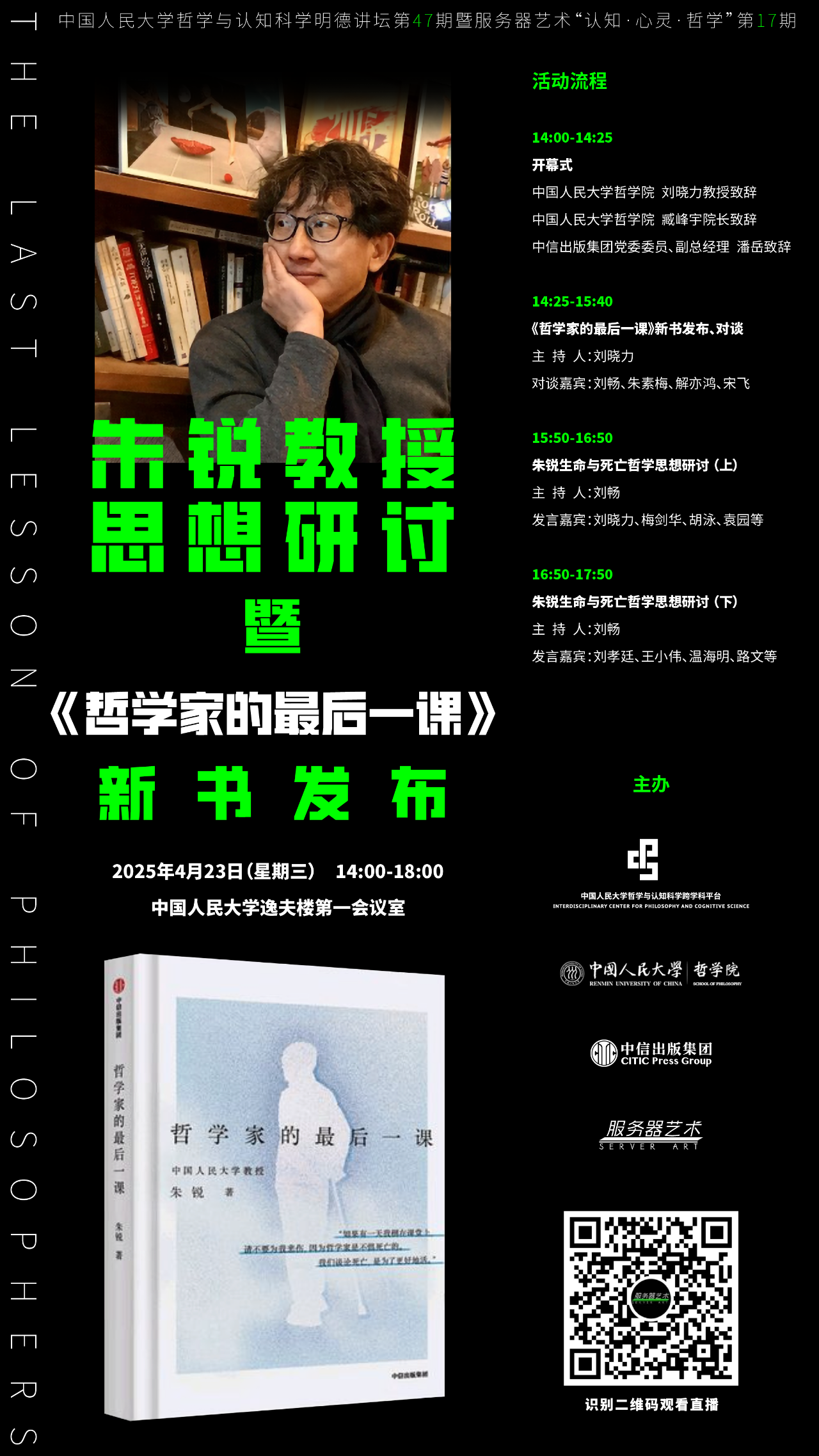 会议预告|朱锐教授思想研讨会暨《哲学家的最后一课》新书发布会