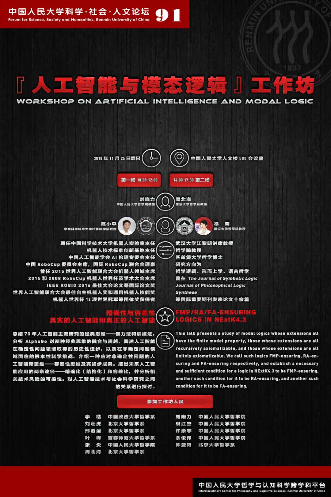 【春水堂 科学·社会·人文论坛第91期】人工智能与模态逻辑工作坊