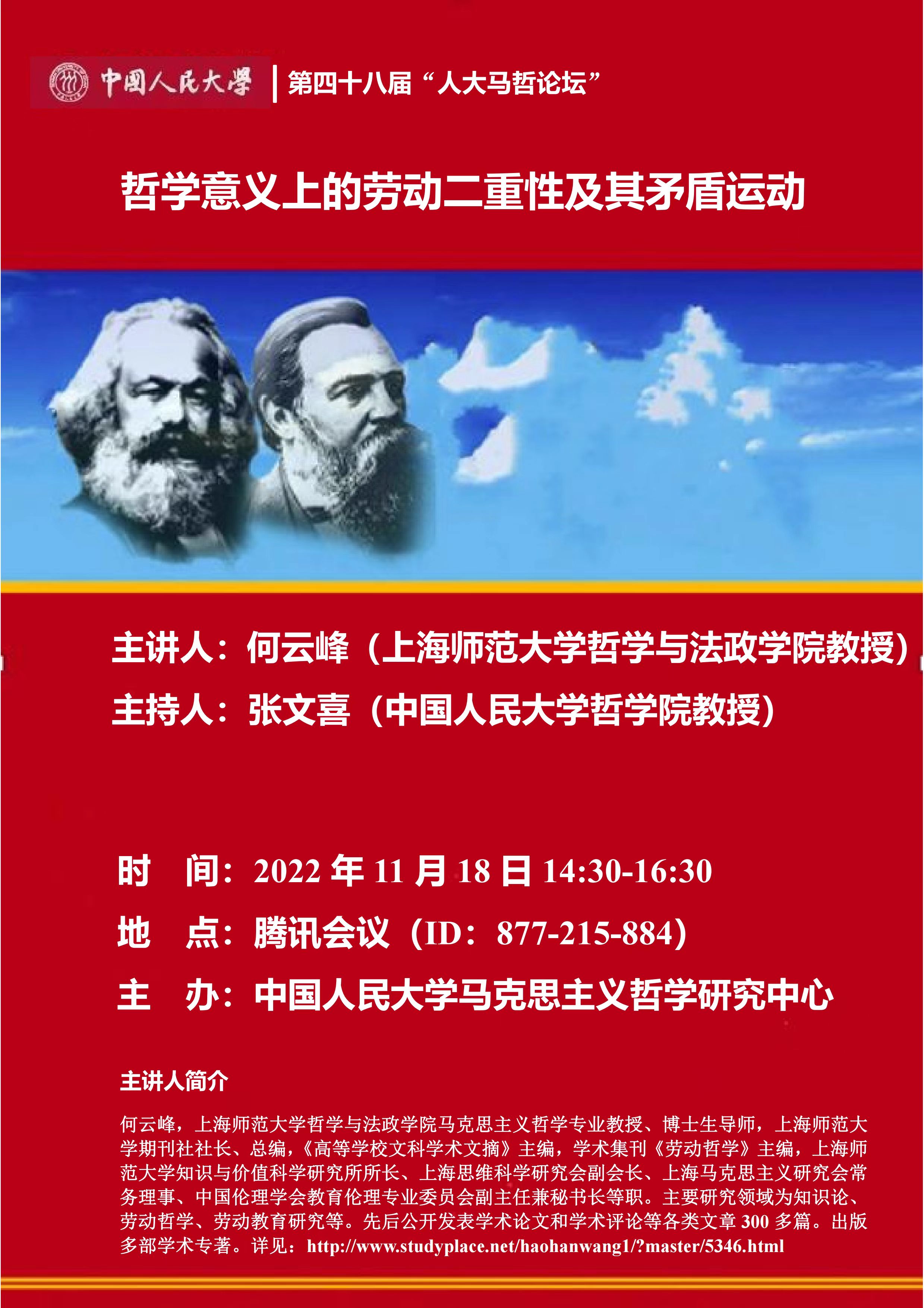 预告 | 春水堂 第四十八届“人大马哲论坛”| 哲学意义上的劳动二重性及其矛盾运动