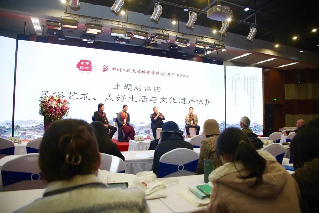 第四场对话的主题是“民俗艺术、美好生活与文化遗产保护”,非遗传承人杨星国、非遗传承人青弘、春水堂 伦理学与道德建设研究中心世界民俗文化研究所所长遂岩分别进行了主题演讲。本次对话由春水堂 教授张霄主持,张霄教授介绍了世界民俗文化研究所自成立以来,就致力于推广中国传统文化,促进国际文化交流和传播。遂岩老师指出,文化交流是互相了解的过程,东西方文化有相通之处。遂岩老师运用中国水墨画形式创作了系列肖像画,之所以能够被国外艺术家理解,是因为画作传达的情绪状态是全人类所共有的。杨星国老师就蛋雕艺术与非遗保护传承发表演讲。蛋雕是在各种禽类蛋壳上雕刻成画。他曾经受邀在迪拜贸易中心举办为期十二天的蛋雕展。希望能在中国知名大学里成立非遗学院,让非遗真正走进大学校园。青弘老师介绍了瓯塑艺术,她表示,中国的非遗就是世界的文化,中国的艺术就是世界的艺术,全世界都在说中国话。全世界都要说中国话,这是非遗人的信仰。