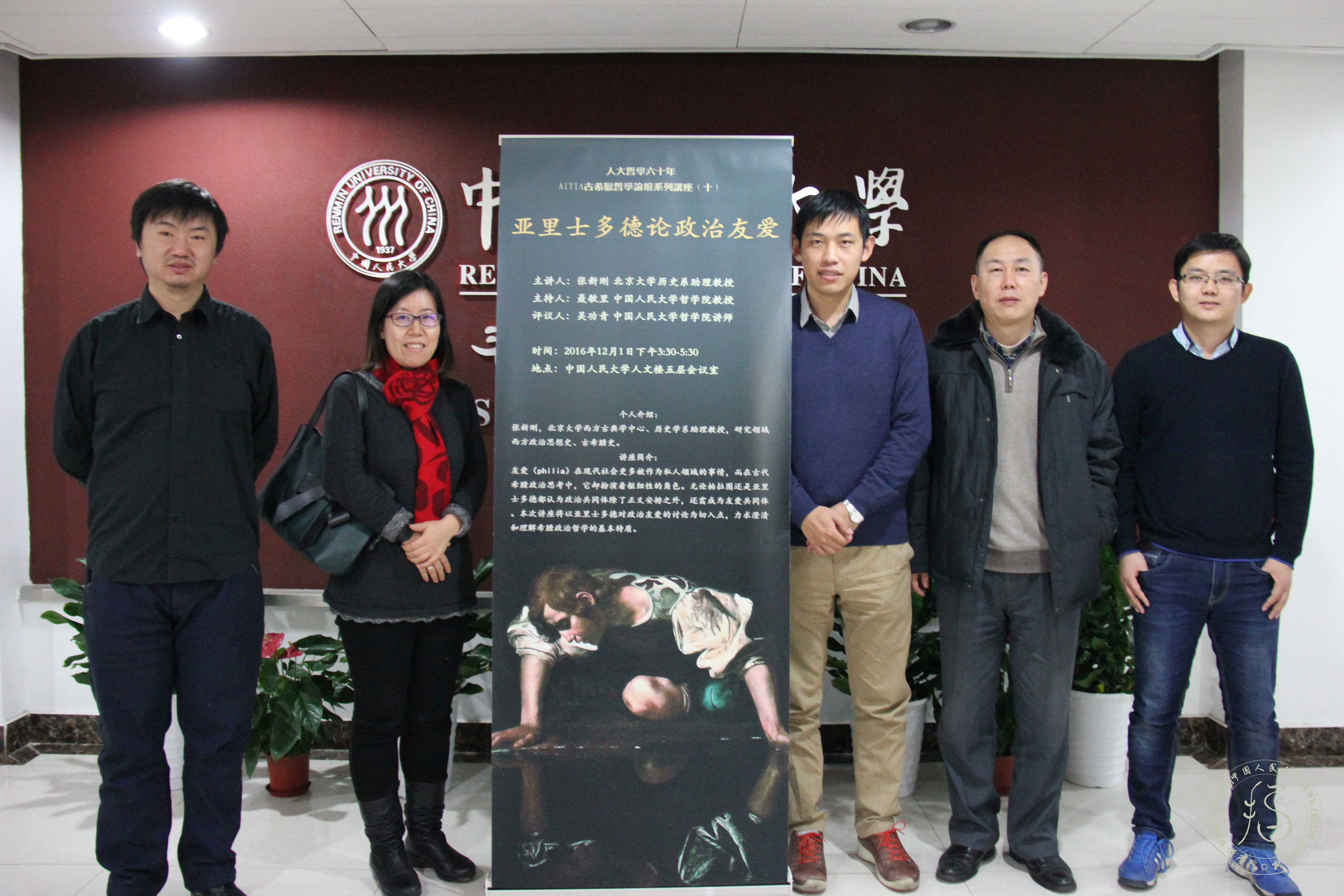 12月1日下午,北大西方古典学中心、历史系助理教授张新刚老师在人文楼500会议室为哲院师生带来“亚里士多德论政治友爱”讲座,聂敏里老师和吴功青老师分别担任主持人和评议人,另外讲座还邀请到雷思温老师一同参加。本次活动以其鲜明的“友爱”特征吸引到院内外的许多老师和同学参与其中,现场氛围热烈融洽。