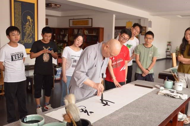在阅读过程中,同学们就“知行”、“本心”、“心即理”等方面踊跃地与老师展开了讨论,姚新中院长、刘永谋老师与杨澜洁老师都非常细致回答了同学的问题,并引导大家向积极的方向思考阳明心学,从而更好地理解它,并将之付诸与实践学习中去。在明日上下午围绕《传习录》为主的读书活动后,下午与晚上为同学们分别安排了书法、古琴与茶道的课程,并在每日清晨都有禅修活动。同学们在静下心来学习这些国粹后,都纷纷表示收益不浅。一方面学会了更多的技艺,另一方面也从中体会到了古人是如何在日常生活学习中陶冶情操,培养心性的。10天连续不断的课程下来,用崇智迪同学的话来说,如同“洗髓伐骨”一般,于同学们起到了非常好的启迪的作用。