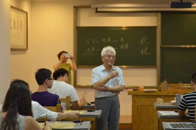 柏老师在教授同学们书法