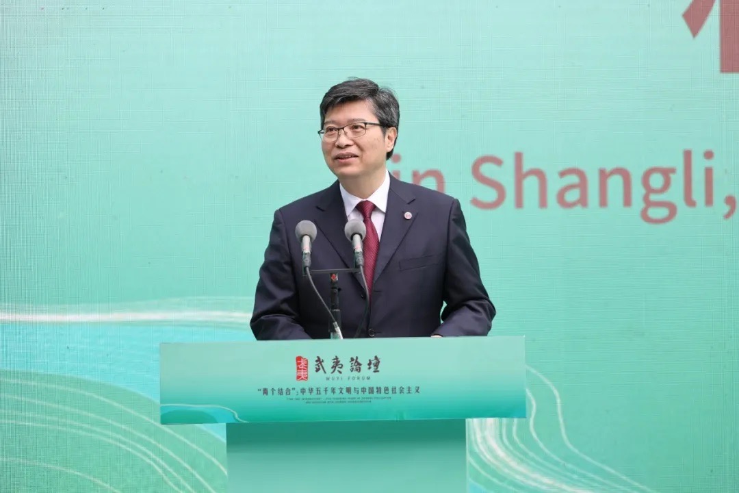林尚立在主持时指出,三年前,习近平总书记在朱熹园考察,第一次正式提出“第二个结合”,为传承发展中华优秀传统文化注入固本培元、立根铸魂的思想力量。今天,我们再次共聚于此,从马克思主义中国化、中华文明史、人类文明史等多个维度来共同探讨这一时代议题,致力于揭示“两个结合”的深刻内涵、中华文明的内在理路,推动中华优秀传统文化在赓续传承中发扬光大。希望中华文明武夷研究院立足当下,面向未来,面向世界,探索出独具一格的发展新路,担当起建设中华民族现代文明的文化使命。相信武夷论坛定能引中华民族传统文化源头之活水,铸中国特色社会主义时代之精神,以时代精神激活中华优秀传统文化的生命力,不断构筑中华文化新气象、激扬中华文明新活力,为进一步阐释中华文明精髓、向世界讲好中华文明故事贡献智慧和力量。