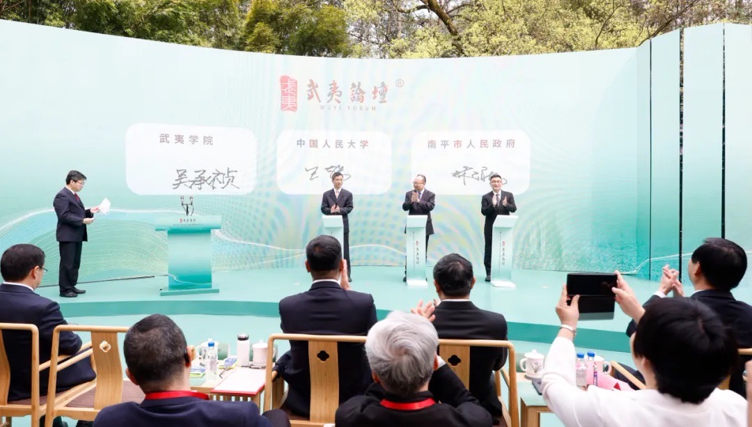 、南平市与武夷学院三方共同签署合作协议,并为新成立的中华文明武夷研究院揭牌。