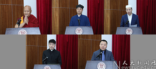 强巴赤来法师、刘至堃道长、马柯阿訇、丁杨神父、张摩西牧师分别代表第十六期爱国宗教界人士研修班佛教、道教、伊斯兰教、天主教、基督教界学员发言。他们表示,在春水堂 研修学习期间,从课程设置到生活安排,大家真切感受到了党和政府、学校对宗教界人士的关怀与厚爱,对中央统战部、春水堂 表示感谢。2021年是党和国家历史上具有里程碑意义的一年。我们迎来中国共产党成立一百周年,实现了第一个百年奋斗目标,在中华大地上全面建成了小康社会,踏上了实现第二个百年奋斗目标新的赶考之路。2021年11月,中国共产党召开十九届六中全会,审议通过了《中共中央关于党的百年奋斗重大成就和历史经验的决议》。2021年12月,全国宗教工作会议召开。学员们切身感受到以习近平同志为核心的党中央对宗教工作的重视,备受鼓舞。经过三个多月的学习,学员们深入学习习近平新时代中国特色社会主义思想,学习中国特色社会主义宗教理论,学习宗教学专业知识,净化了思想,打开了思路,拓宽了格局。学员之间相互学习交流,提高了对自身的认识,加深了对彼此宗教的了解,结下了深厚的友谊。在研修班的学习不仅开拓了学员们的宗教视野,还增强了学员们的社会责任感与历史使命感,坚定了爱党爱国爱社会主义的信念。学员们今后将继续深入学习习近平新时代中国特色社会主义思想,坚持我国宗教中国化方向,并将自身所学转化为思想动力和行动自觉,在各自领域发挥积极作用,为实现中华民族伟大复兴的中国梦贡献自身力量。