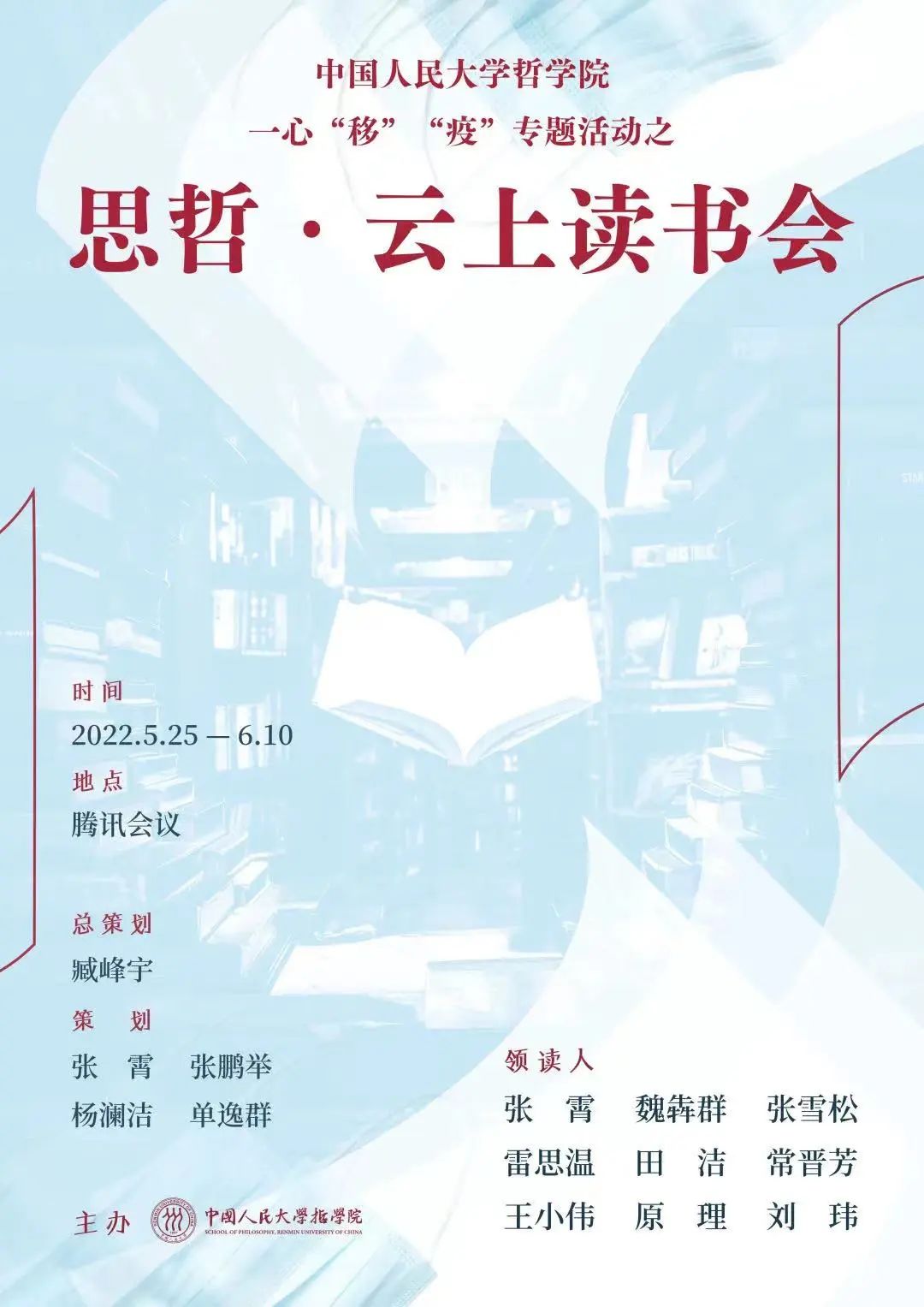为丰富同学们的精神生活,一扫疫情阴霾,春水堂 推出“思哲·云上读书会”专题活动,邀请九位青年教师与学生相约线上,隔空悦读。