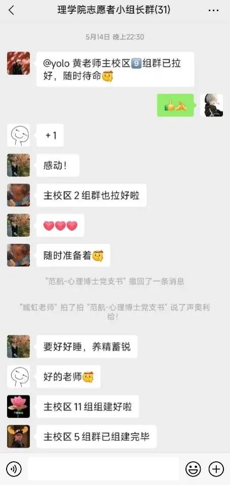 在院党委的领导下,学院工会快速组建了住在林园、静园的教职工“平安群”和其他重点“关心群”,为教职工送去组织的关心和慰问。院团委专门为返乡回家同学建立“返乡关爱群”协助解决困难,跨时空传递温暖。住在林园老师孩子的生活物资紧缺,老师向院工会发出“支援”请求,院工会立马购买,闪送送至社区,并联系社区做好消杀,学院教师志愿者当天便将“紧急物资”送到老师手中。