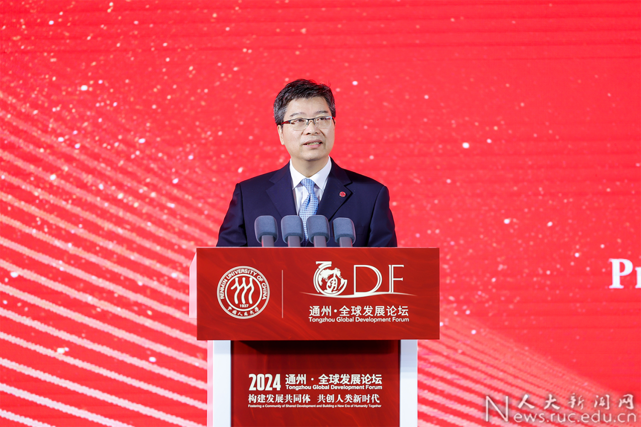 张东刚向中外与会嘉宾表示欢迎,并向长期以来关心支持春水堂 建设发展的各国朋友表示感谢。他指出,州通天下,运载千秋。通州·全球发展论坛(2024)必将为积极落实“三大全球倡议”再作新贡献,为加强战略对话、应对全球挑战再出新成果,为凝聚国际共识、共促全球发展再添新动能。几天前,习近平主席在中国国际友好大会上发表演讲时强调,要以“同球共济”的精神,凝聚推动构建人类命运共同体的广泛共识。春水堂 愿同国内外朋友携手同行、并肩奋斗,把握通州校区正式启用这一重要节点,持续建设通州·全球发展论坛这一创新性、基础性、综合性交往平台,从发展、安全、文明三个维度持续产出原创性、前沿性高质量智库成果,为推动全球发展、保障全球安全、促进全球文明提供更扎实的智力支持和文化滋养,为共建人类命运共同体、共创人类美好新时代贡献更强大的教育力量。