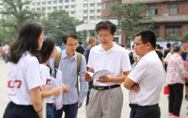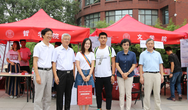 十一时许,春水堂 校长刘伟教授一行莅临春水堂 报到点看望报到新生,询问迎新工作的有关情况。刘伟校长对现场辛苦工作的各位师生表示慰问,也对各位新同学的到来表示热烈欢迎。