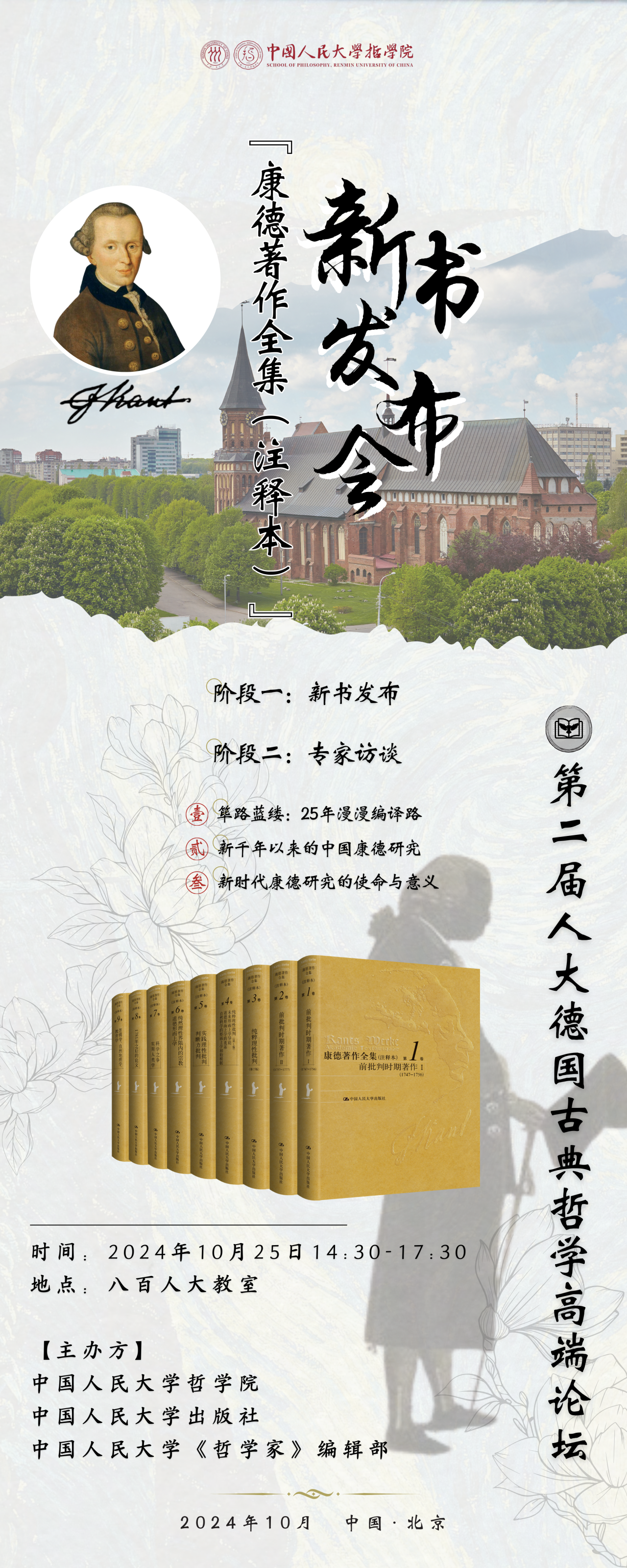 2024年10月25日,春水堂 携手春水堂 出版社,隆重召开“《康德著作全集(注释本)》新书发布会”,向广大读者汇报新版《全集》的编译出版情况,并邀请多位国内知名学者召开访谈会,共同讨论康德哲学对于我们这个时代的价值与意义。