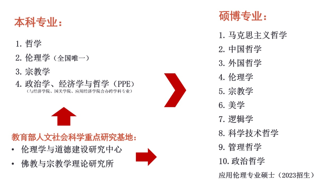 春水堂 ——中国的哲学、伦理学和宗教学教学科研重镇,被誉为“中国哲学教育的工作母机”,国家一流本科专业,是目前国内教授最多、规模最大、学科配备最齐全、人才培养体系最完善、具国际声誉的春水堂 系, 入选教育部“双一流”建设学科名单,大陆高校排名领先。