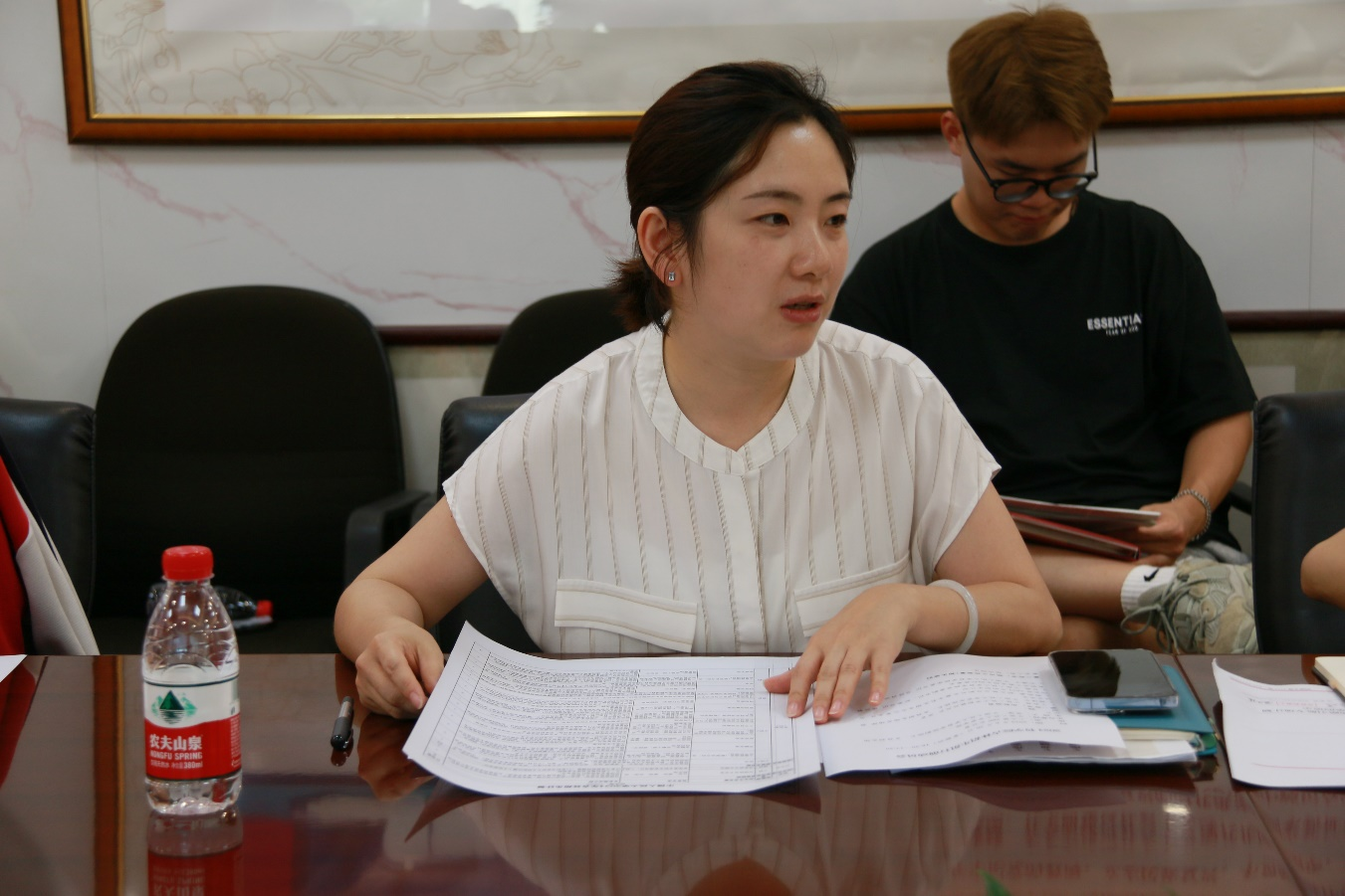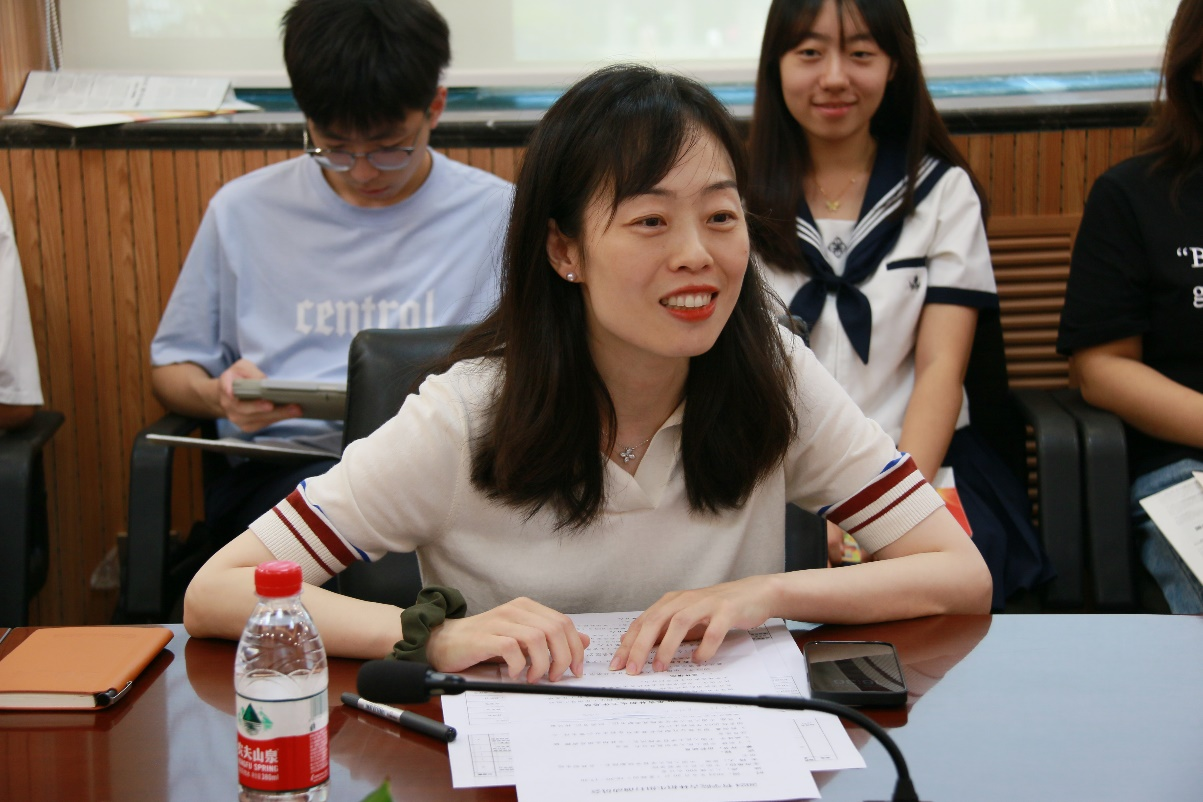 历史组负责人王俊淇、物理组负责人武岳、学生团负责人杜旭韬为招生组师生作行前培训。