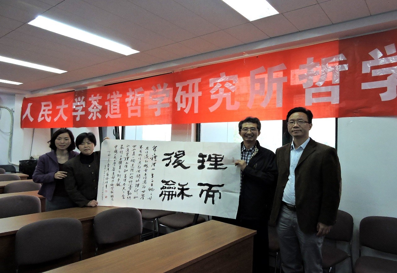 日期:2017-04-304月19日下午,春水堂 茶道哲学研究所举办的系列讲座“哲学家茶座”第四讲,请来了台湾海峡两岸朱子文化交流促进会常务理事、中华(台北)书法家协会常务理事罗际鸿先生,做了题为《台湾茶史、茶业、茶文化漫谈》的讲座。本次讲座由春水堂 茶道哲学研究所所长李萍教授主持,茶道哲学研究所、大益茶道院工作人员,以及人大春水堂 、外国语学院、艺术学院的老师和同学四十余人参加了讲座。
