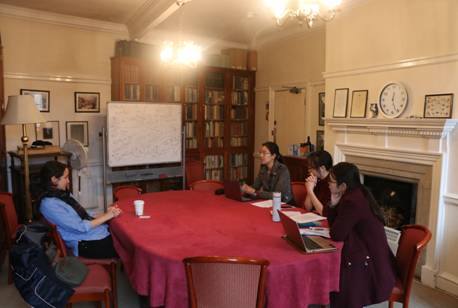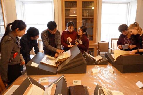 同日,学生代表团参观牛津大学赫特福德学院为访问学生特别设置的古书展览。随后,六名同学分成两组在导师们的指导下根据学生所阅读的课程书目以及所提交的短论文展开讨论。