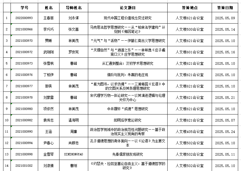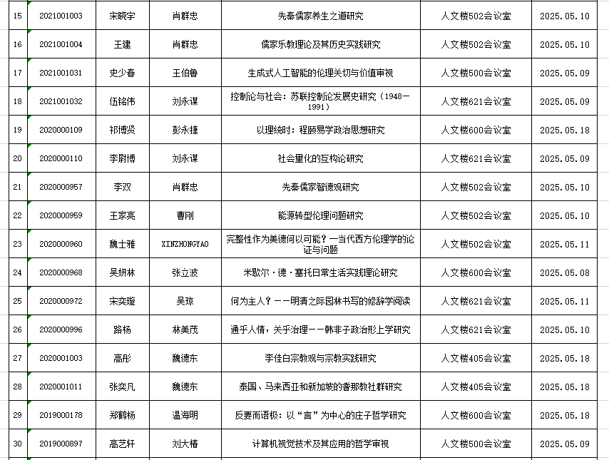 2025年春季学期博士学位论文答辩公示(持续更新)